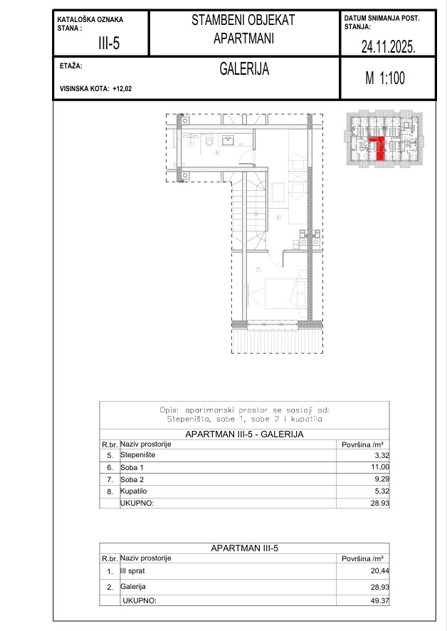 Apartman je organizovan na dvije etaže, što omogućava komforan boravak i jasnu podjelu prostora.